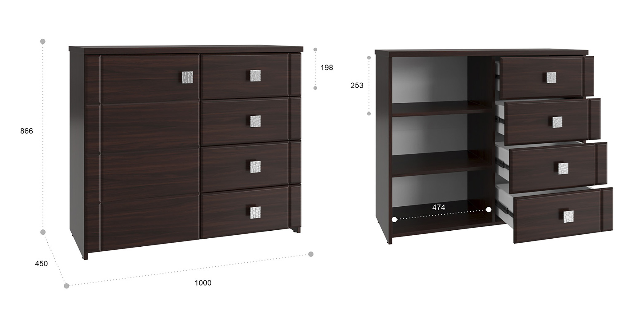 Размеры модуля (ш/в/г) вмм: 1000х866х450.Материал корпуса/фасада: ЛДСП, МДФ.