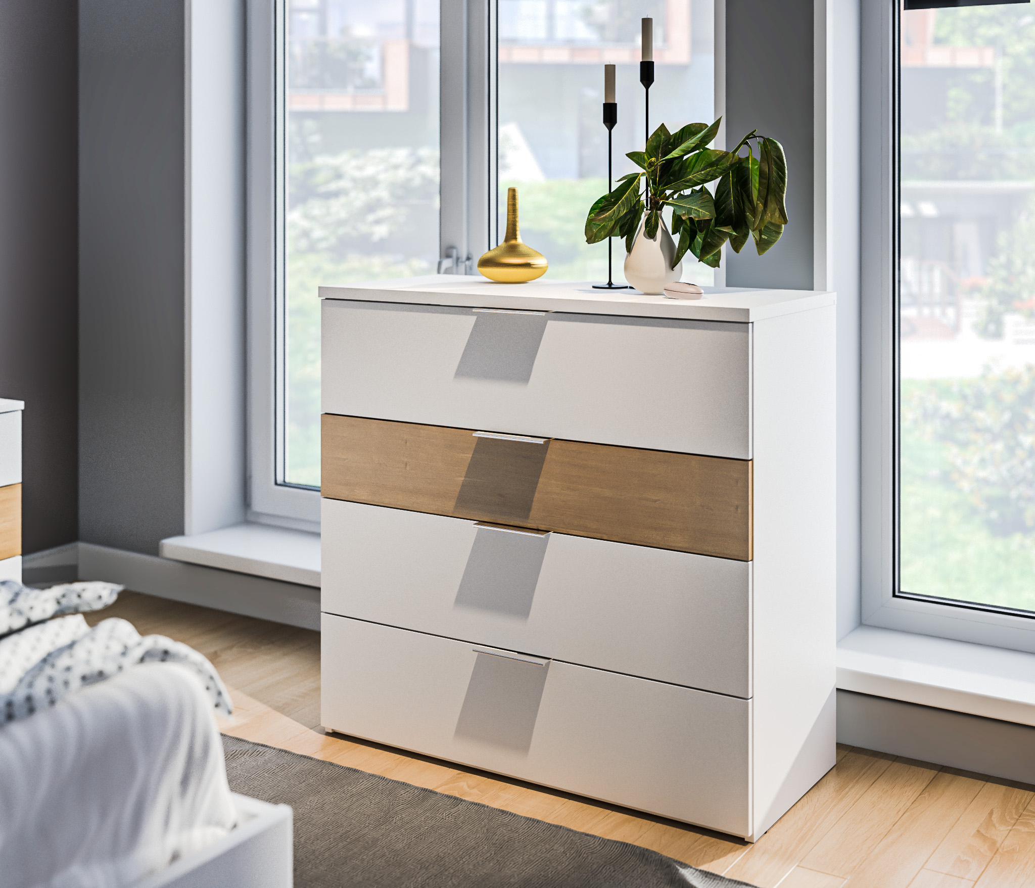Отзывы о Столплит Тумба с ящиками Мальта СБ-3295 Белый/Дуб Гамильтон,МДФ Белый