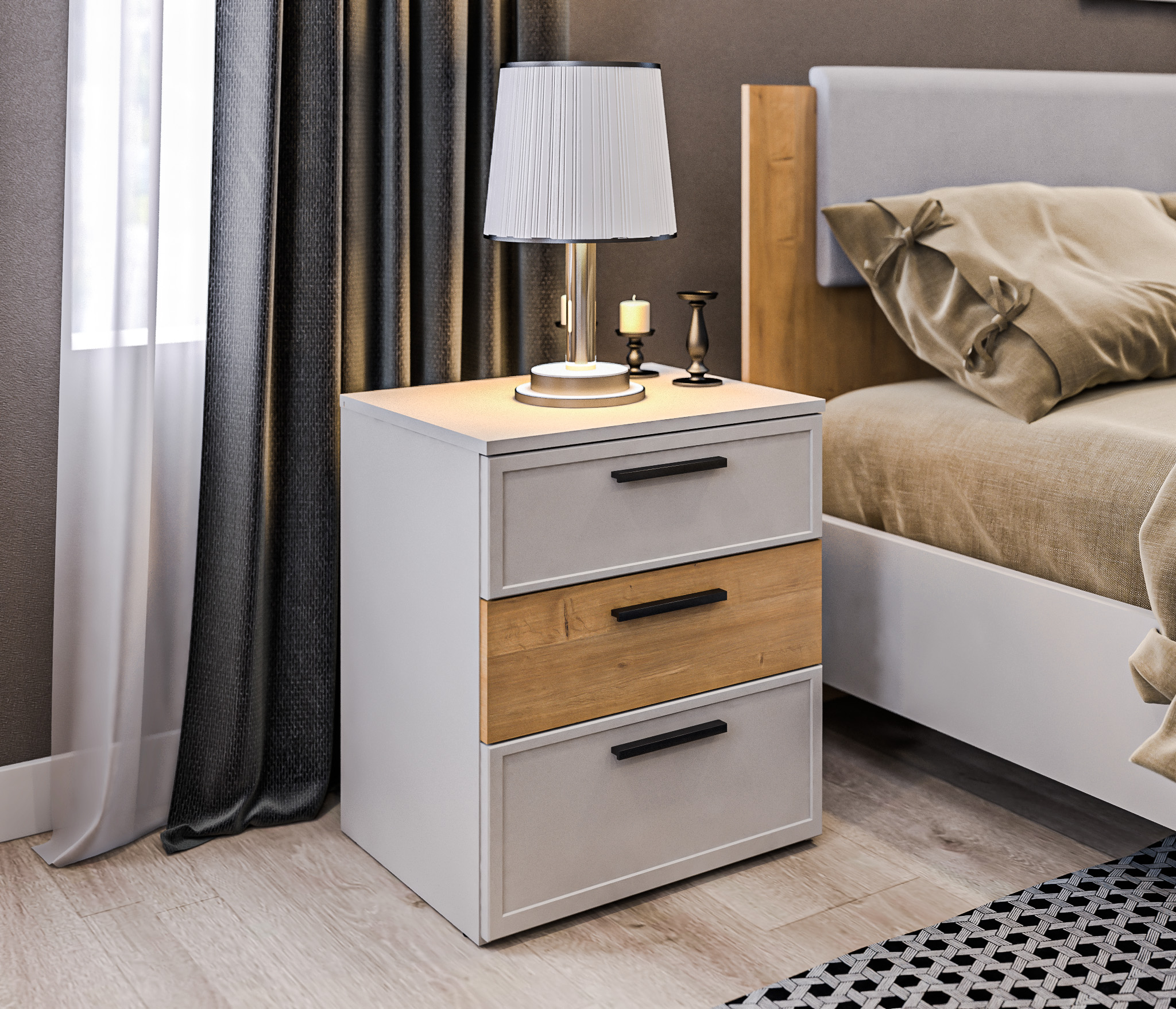 Тумба имеет три вместительных ящика.