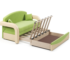 Достойный диванчик за эти деньги. Смотрится не дешево. Деревяшки кустарные, но за два года не сломались. Выдвигаются легко, ребенок справляется. У нас голубой, но цвет не соответствует картинке. Он более темный и насыщенный. Даже круче смотрится.