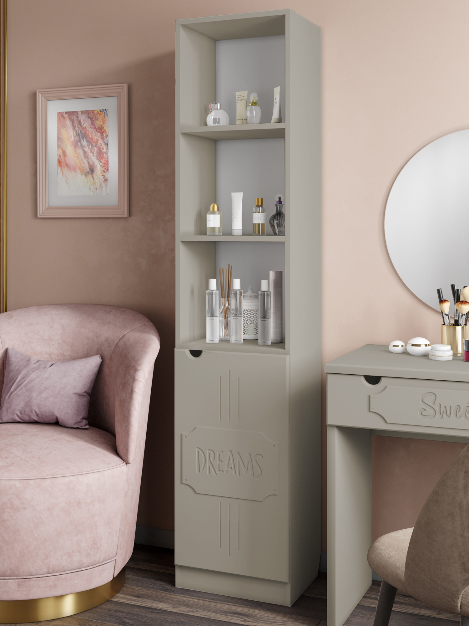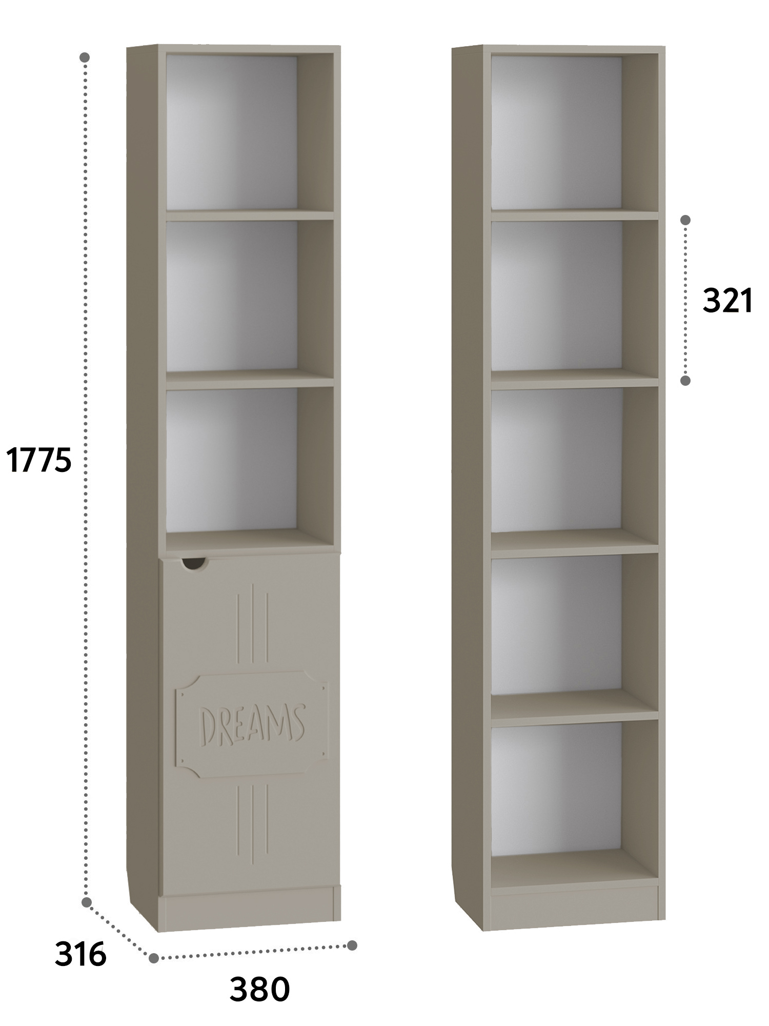 Пенал ДримСтар ДС-61 станет прекрасным дополнением вашей гостиной, спальни или детской комнаты. Пенал имеет два отделения, верхнее отделение с двумя открытыми полками, нижнее отделение с дверью и полкой. Межполочное расстояние 321 мм. Фурнитура: петли с доводчиками.