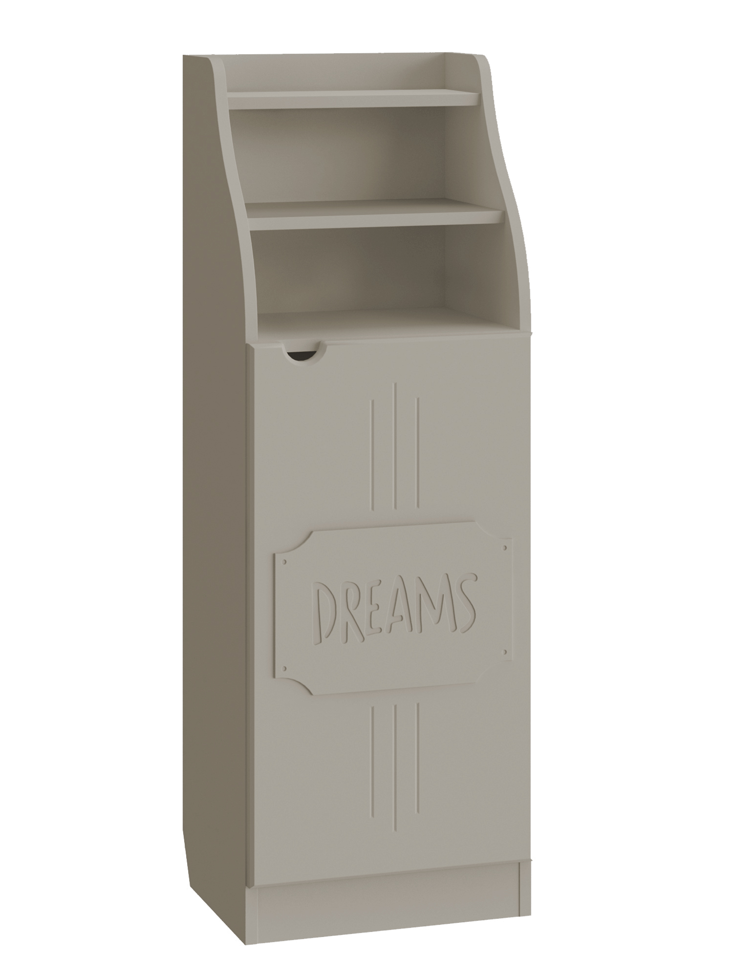 Шкаф ДримСтар ДС-63 прекрасно подойдет для вашей квартиры или загородного дома. Шкаф имеет две открытых верхних ниши и закрытые распашной дверцей полки внизу. Дверца крепится на петли с доводчиками.