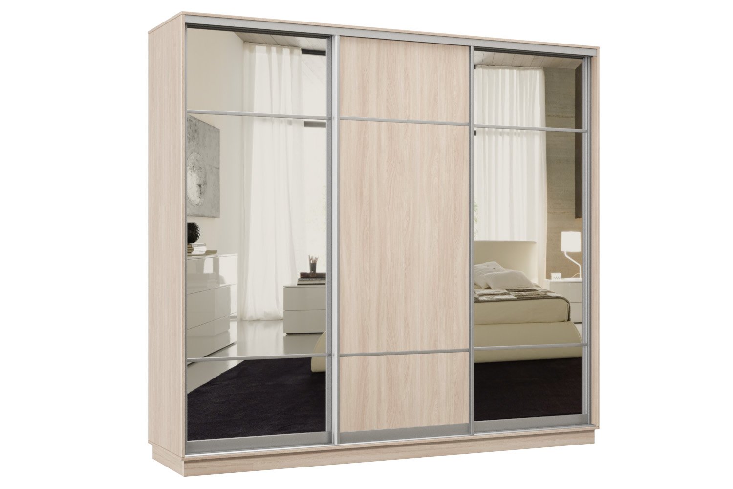 Шкаф-купе Премьер Лайт 55 (11;08;11) трехдверный (Ясень шимо светлый)