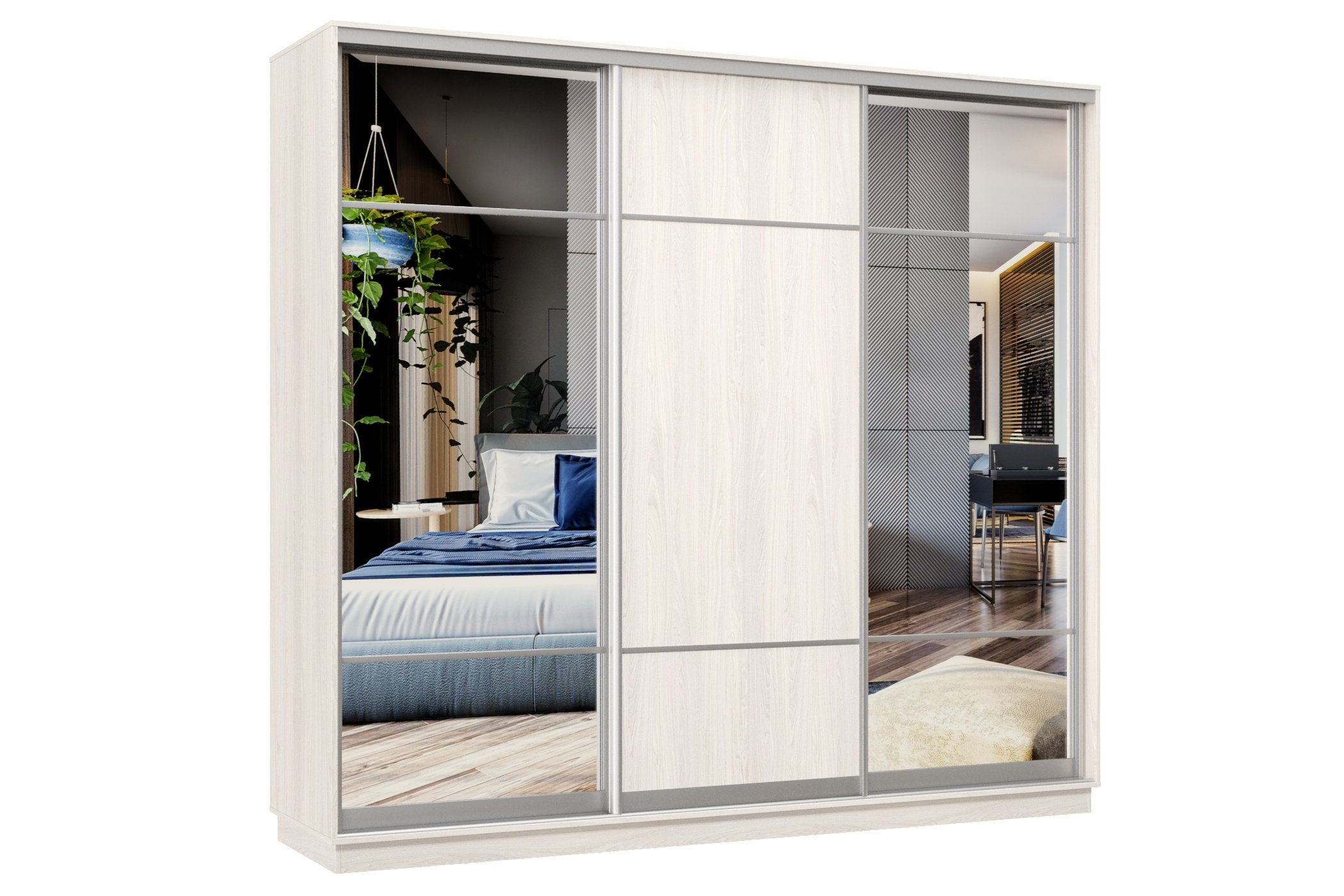 Шкаф-купе Премьер Лайт 58 (11;08;11) трехдверный (Ясень Анкор светлый)