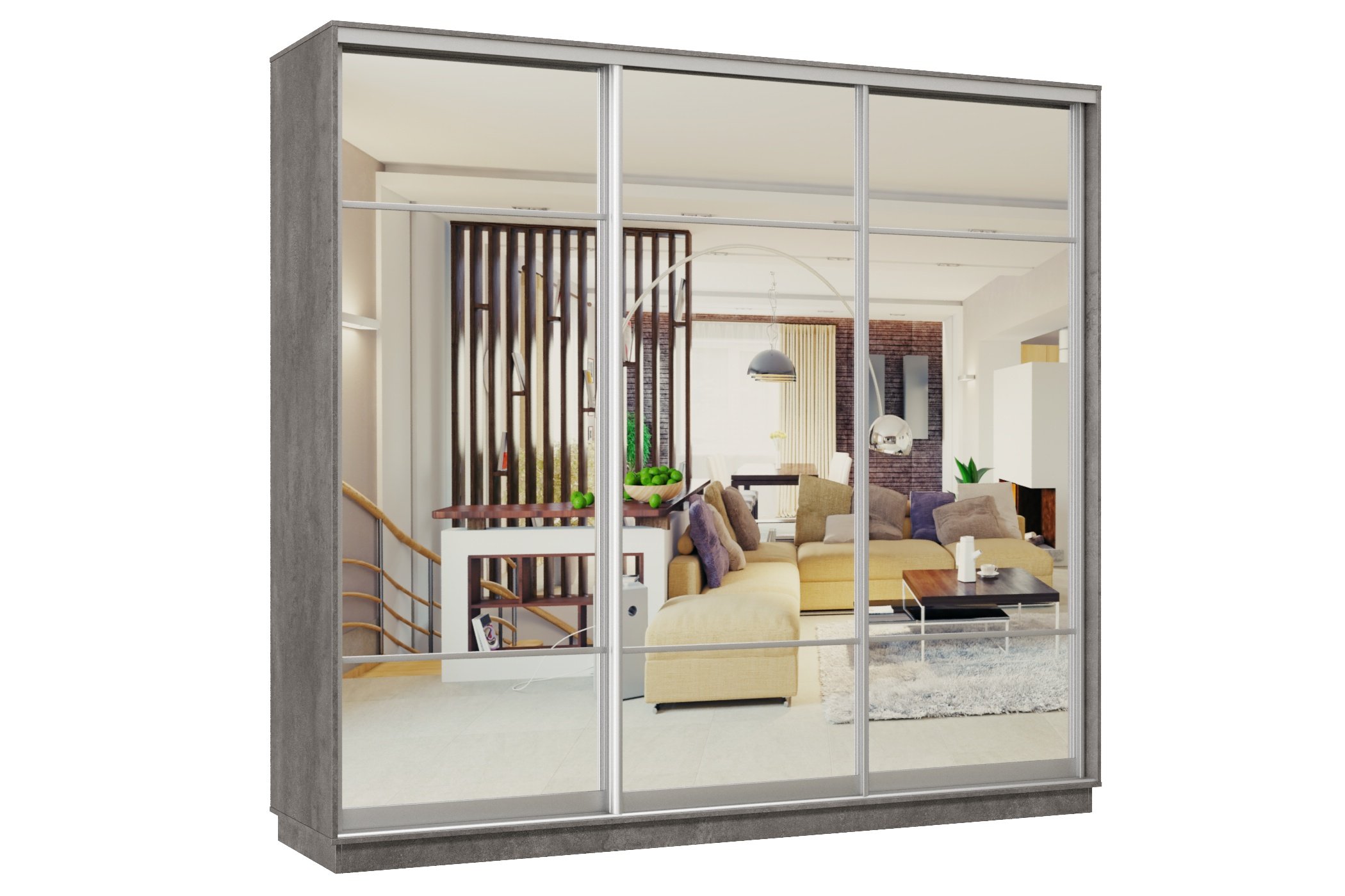Шкаф-купе Премьер Лайт 58 (11;11;11) трехдверный (Бетон)