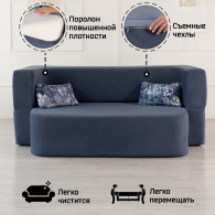 Вес всего 25 кг. Это позволит Вам без усилий поднимать и передвигать бескаркасный трансформер при уборке. Легкость даст возможность перемещать диван-кровать в разные помещения например спальню или на кухню. Благодаря отсутствию твердых элементов в конструкции софа безопасна для ребенка и идеально впишется в детскую комнату.