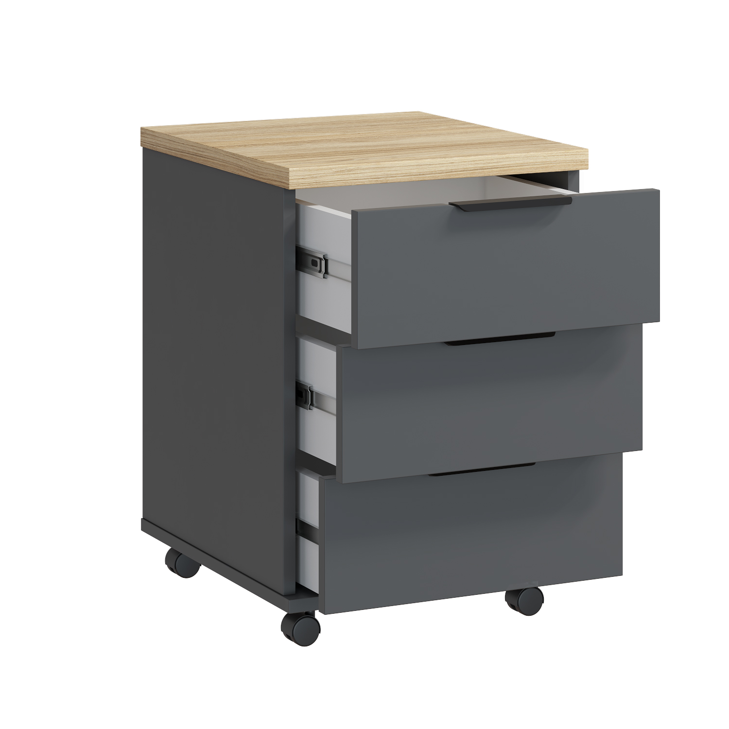 Тумба оснащена мебельными роликовыми колесами.