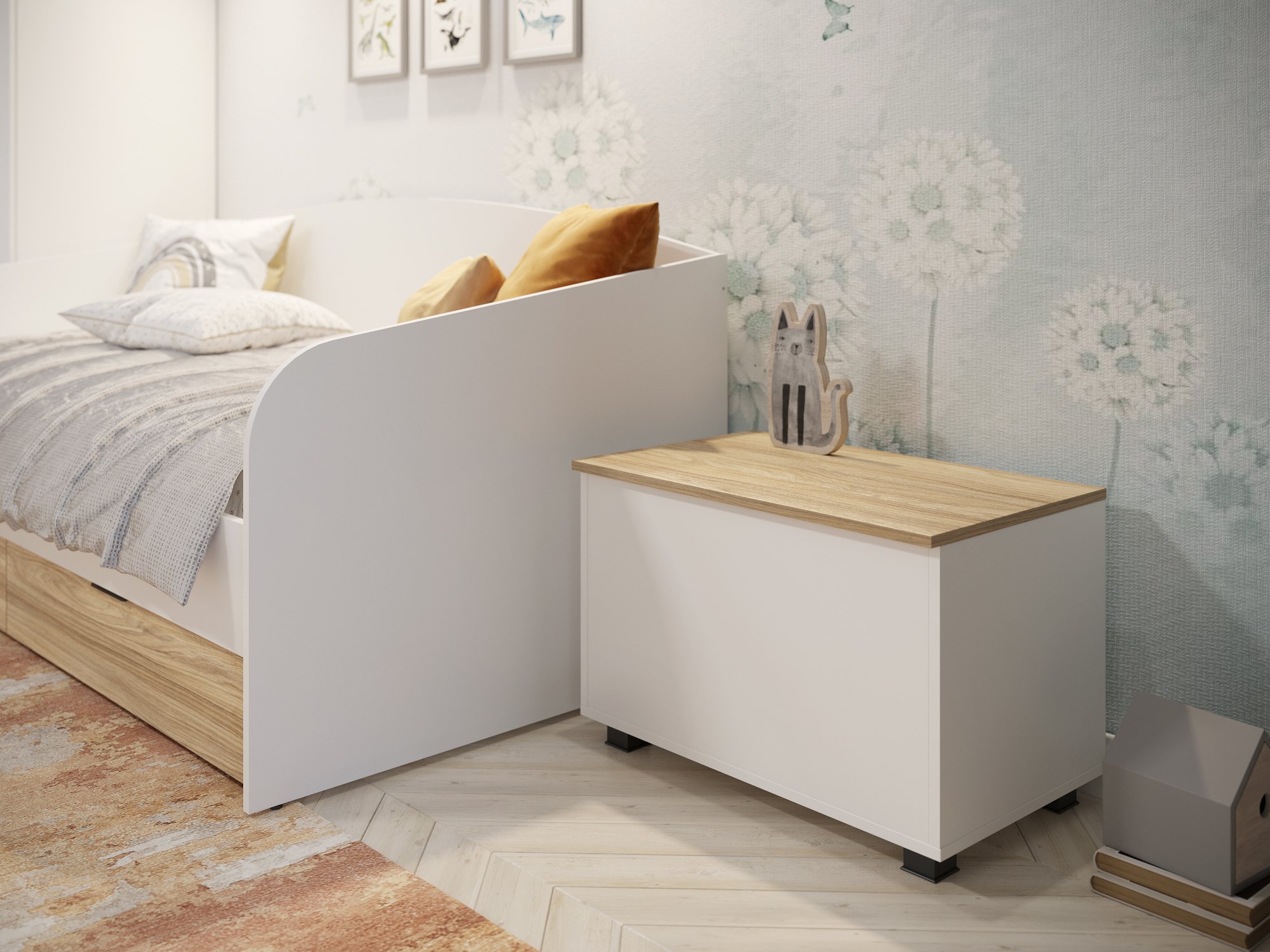 Ящик для игрушек/сундук Скайлайт СЛ-60 прекрасно подойдет для хранения конструкторов, наборов для творчества или мягких игрушек. Корпус и крышка изделия изготовлены из ЛДСП 16 мм.