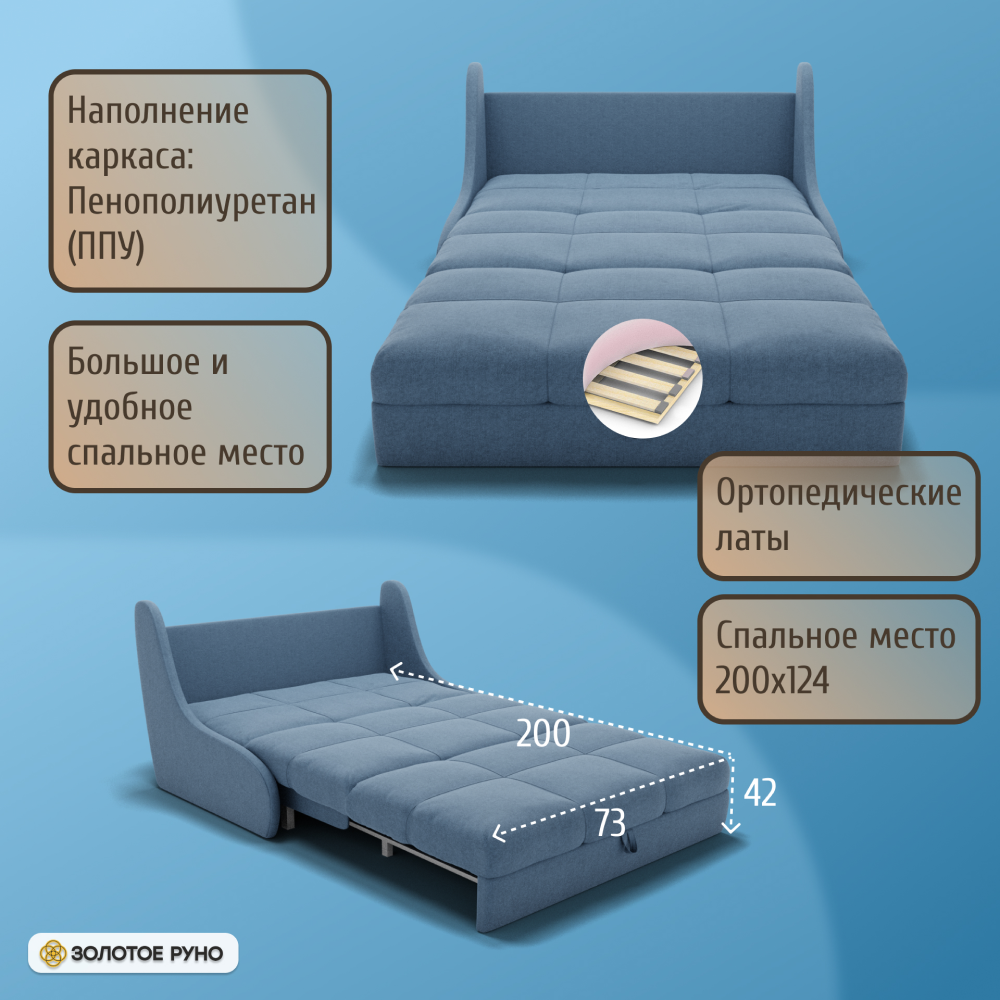 Отзывы о Столплит Прямой диван Куба на 1200 ППУ, велюр Голубой