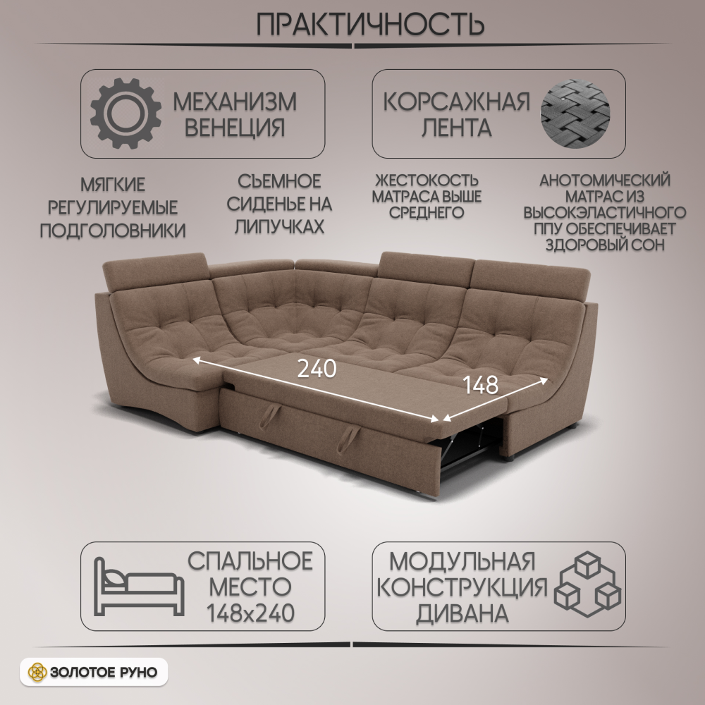 Отзывы о Столплит Угловой Диван Монако-3 ППУ, велюр бежевый/коричневый