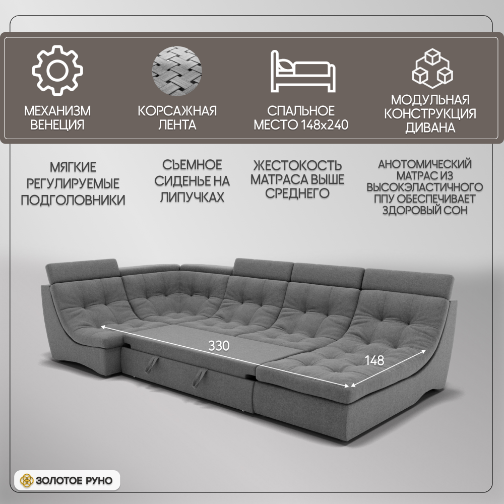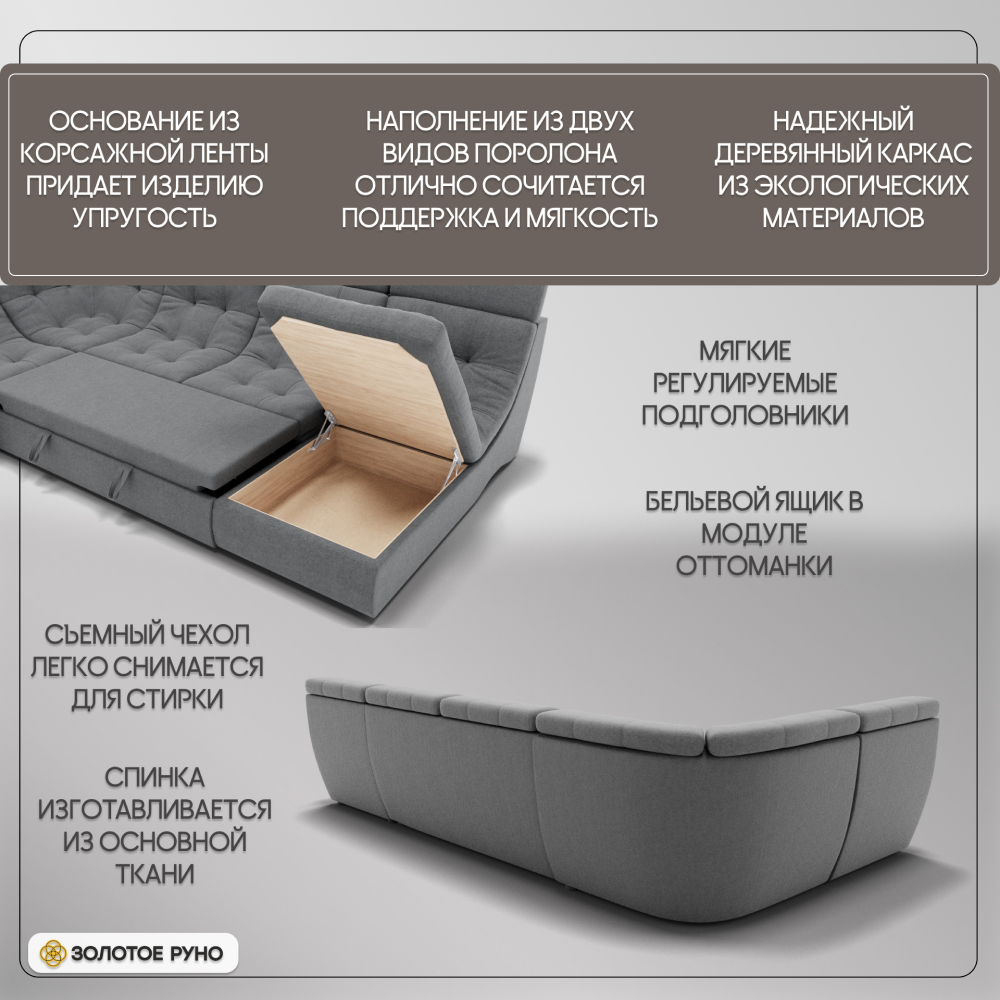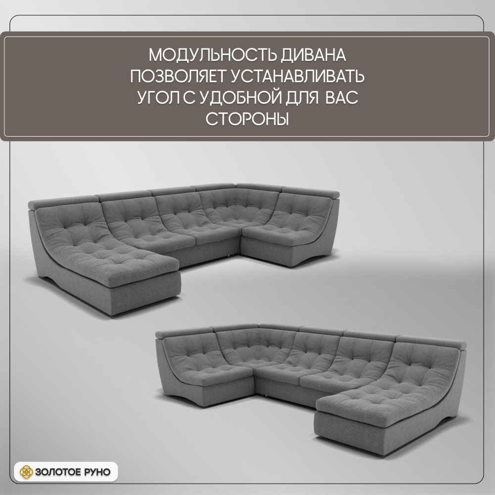 Отзывы о Столплит П-образный диван Монако-4 ППУ, велюр Серый