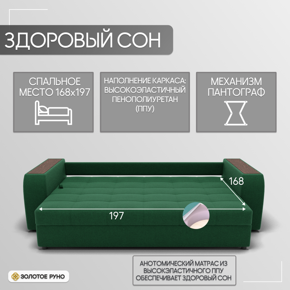 Отзывы о Столплит Прямой диван Сенатор-1 ППУ, велюр Зеленый