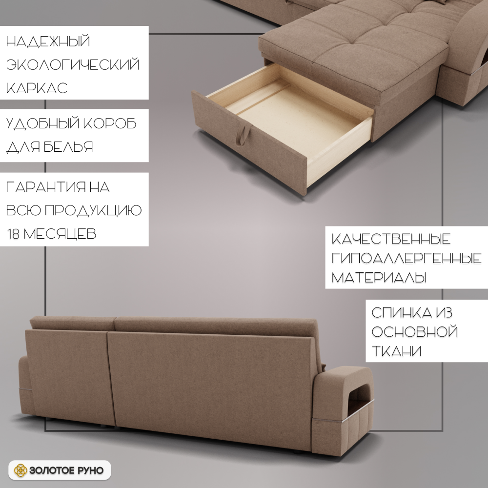 Отзывы о Столплит Угловой диван Майами-2 ППУ, велюр бежевый/коричневый