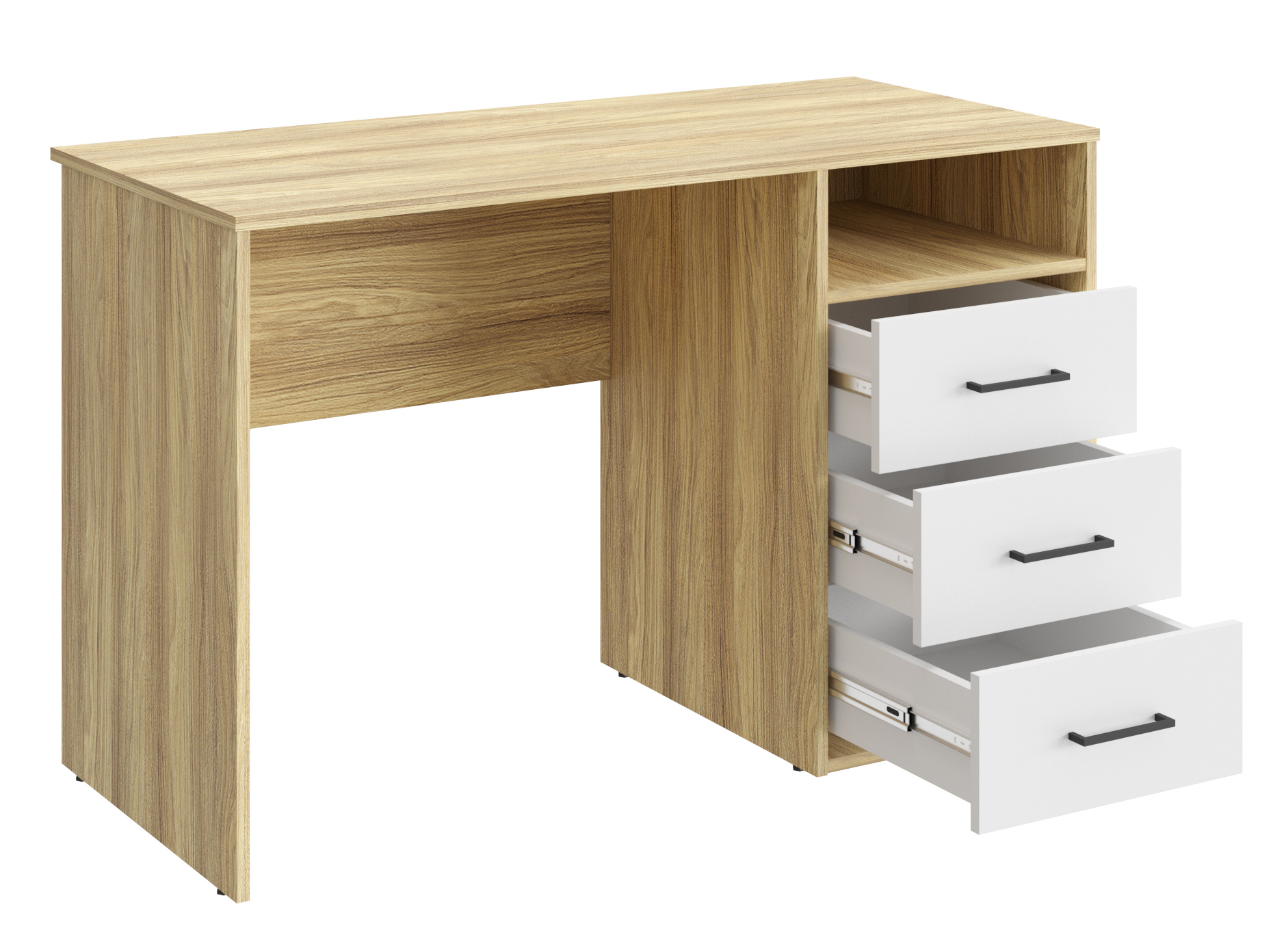 Письменный стол Оскар ОС-20 идеально подойдет для создания рабочего места в небольшом помещении. Благодаря своей универсальности стол с ящиками и нишей может использоваться как компьютерный, офисный, письменный или стол для ноутбука. С его помощью вы сможете организовать порядок на своем рабочем месте. Стол гармонично впишется в любой стиль интерьера. Современный и простой дизайн делает его идеальным для использования дома и в офисе. Свес крышки в 30 мм обеспечит прилегание к стене с любым плинтусом.