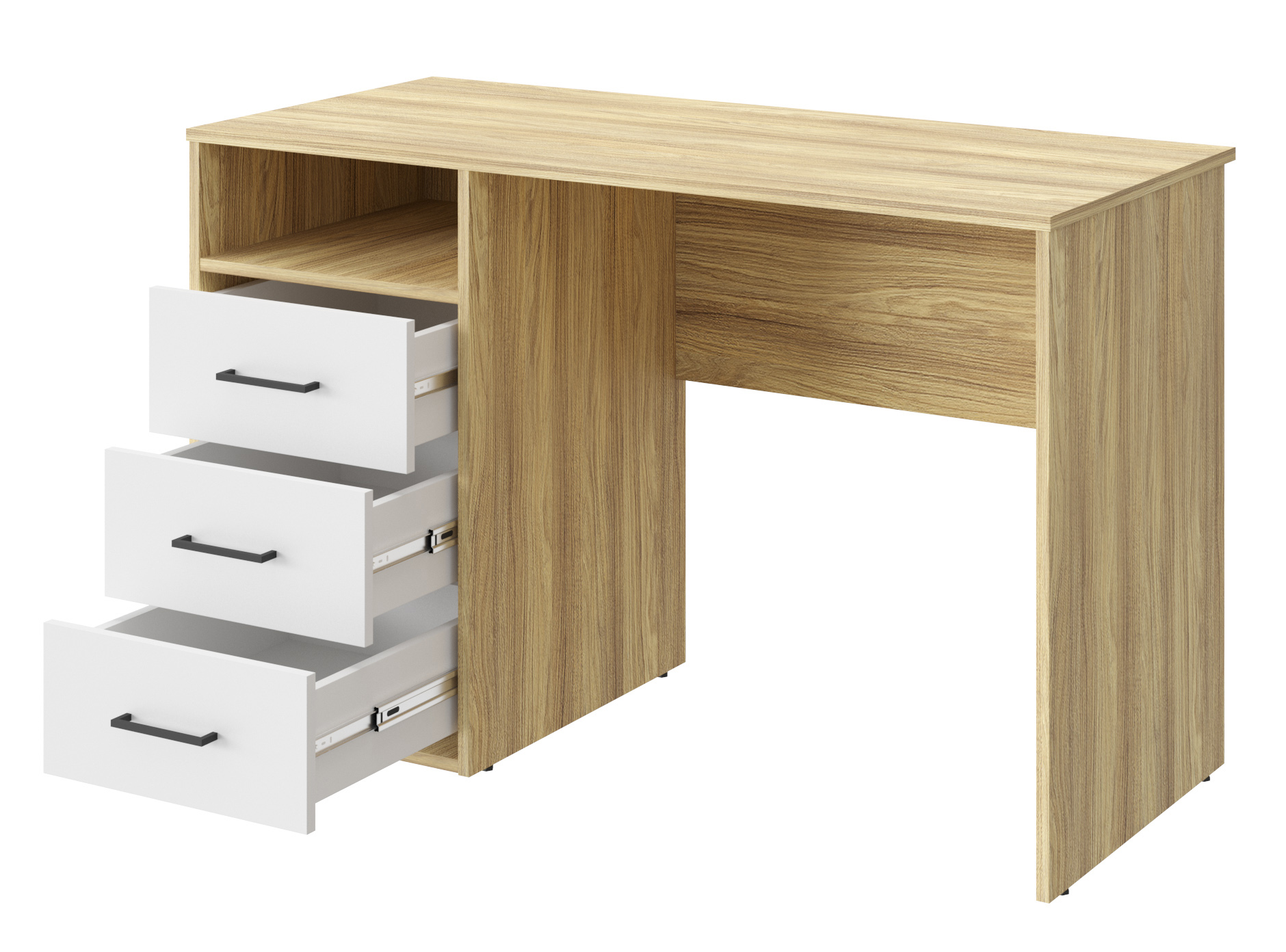 Письменный стол Оскар ОС-21 идеально подойдет для создания рабочего места в небольшом помещении. Благодаря своей универсальности стол с ящиками и нишей может использоваться как компьютерный, офисный, письменный или стол для ноутбука. С его помощью вы сможете организовать порядок на своем рабочем месте. Стол гармонично впишется в любой стиль интерьера. Современный и простой дизайн делает его идеальным для использования дома и в офисе. Свес крышки в 30 мм обеспечит прилегание к стене с любым плинтусом. Фурнитура: телескопические направляющие полного выдвижения без доводчиков, ручки пластик. Регулируемые опоры позволяют компенсировать возможные неровности пола.