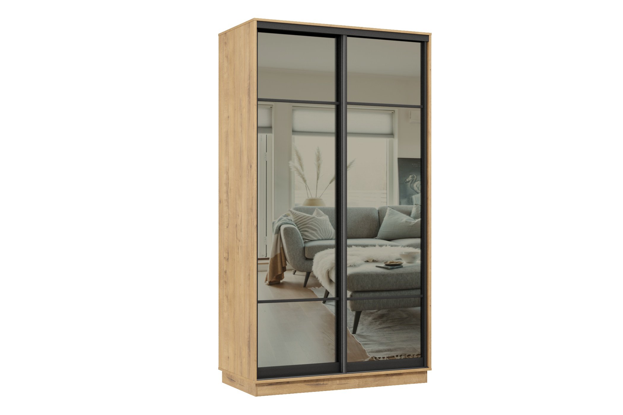 Шкаф-купе Премьер МИНИ 03 (11ЗГ;11ЗГ) фасады зеркало графит/двухдверный/Профиль чёрный муар (Бунратти)