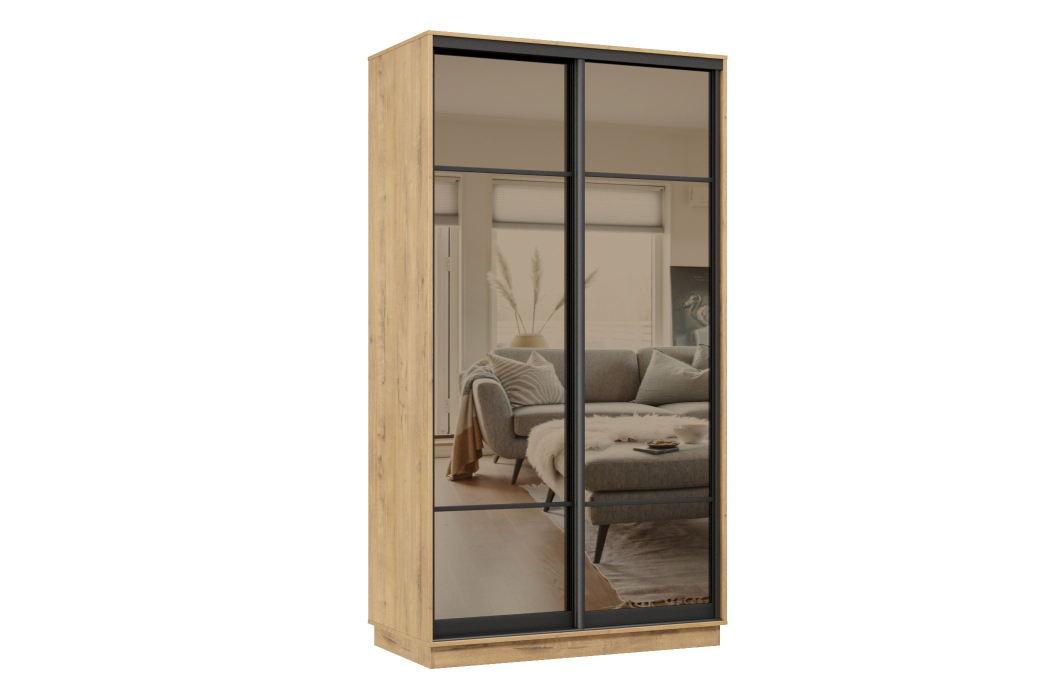 Шкаф-купе Премьер МИНИ 03 (11ЗБ;11ЗБ) фасады зеркало бронза/двухдверный/Профиль чёрный муар (Бунратти)