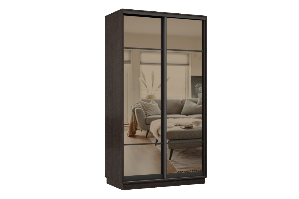 Шкаф-купе Премьер 12 (11ЗБ;11ЗБ) фасады зеркало бронза/двухдверный/Профиль чёрный муар (Венге)