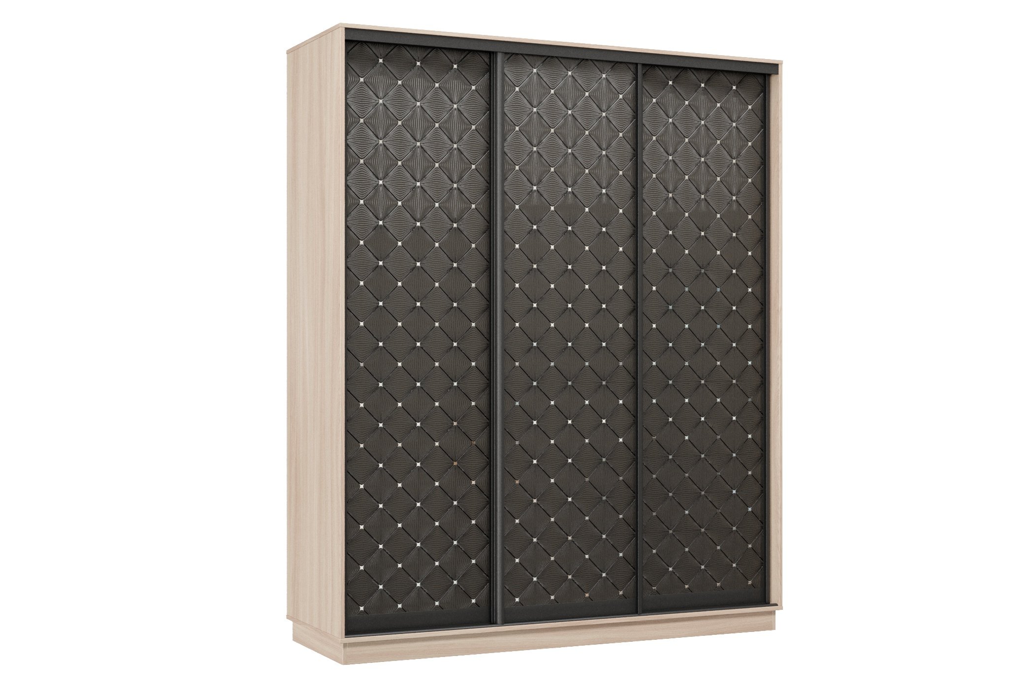 Шкаф-купе Премьер 23 (01РЧ;01РЧ;01РЧ) фасады ромб чёрный/трёхдверный/Профиль чёрный муар (Ясень шимо светлый)