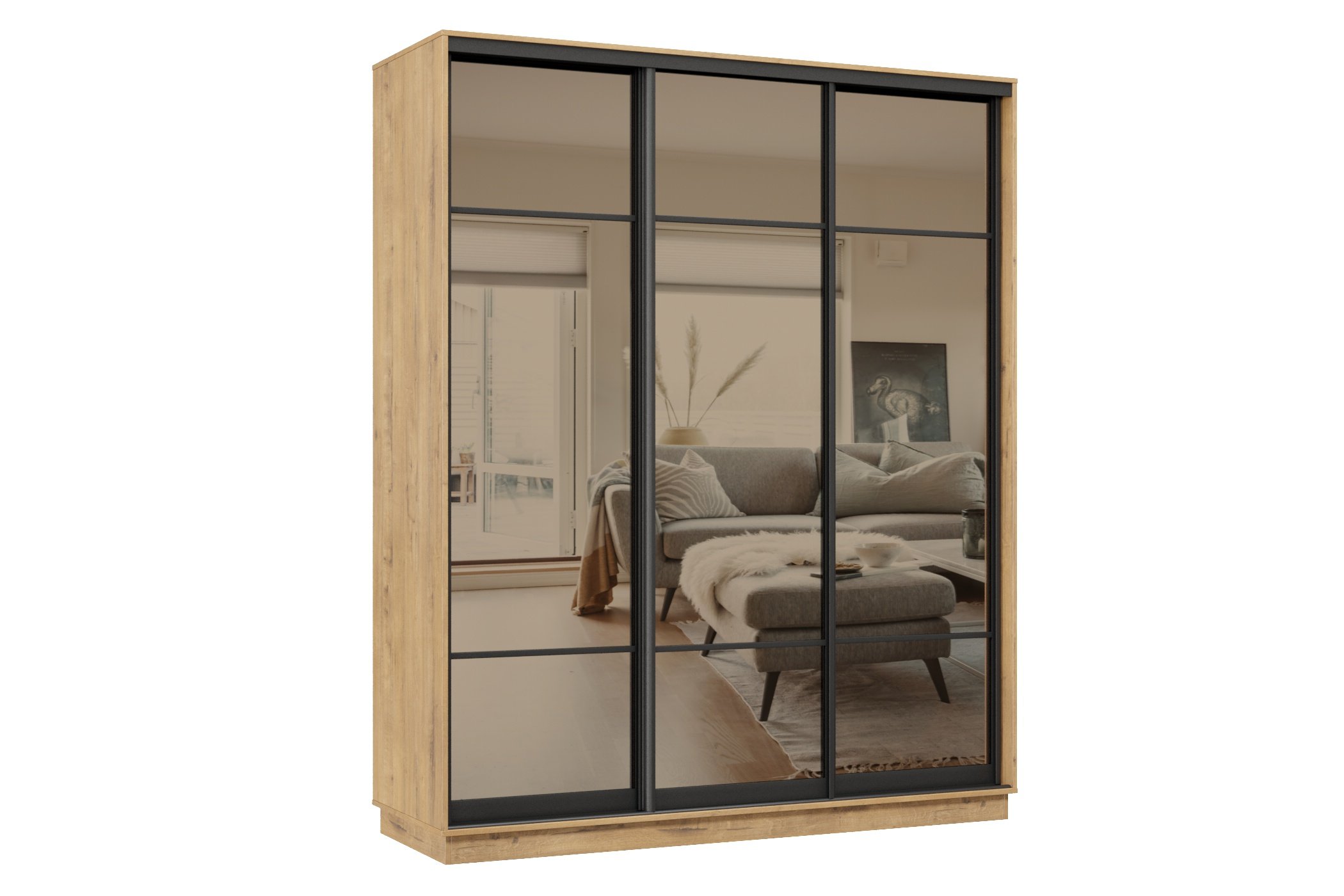 Отзывы о Столплит Шкаф-купе Премьер 24 (11ЗБ;11ЗБ;11ЗБ) фасады зеркало бронза/трёхдверный/Профиль чёрный муар Бунратти
