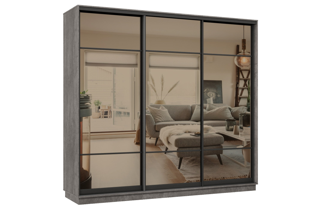 Отзывы о Столплит Шкаф-купе Премьер 35 (11ЗБ;11ЗБ;11ЗБ) фасады зеркало бронза/трёхдверный/Профиль чёрный муар Бетон