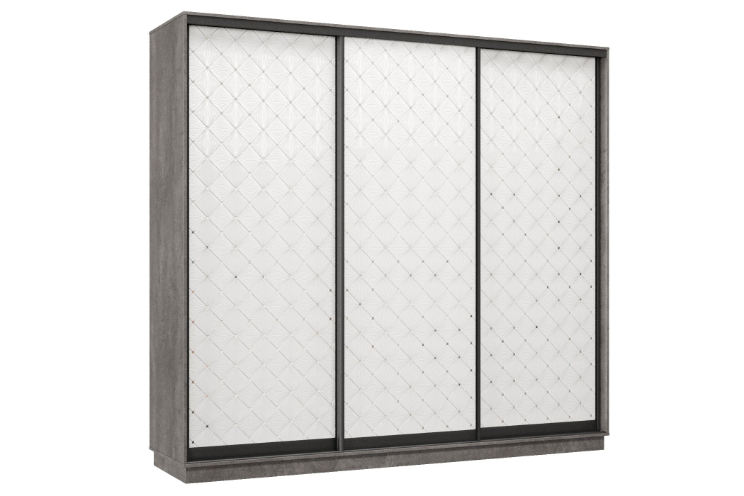 Отзывы о Столплит Шкаф-купе Премьер 57 (01РБ;01РБ;01РБ) фасады ромб белый/трёхдверный/Профиль чёрный муар Бетон