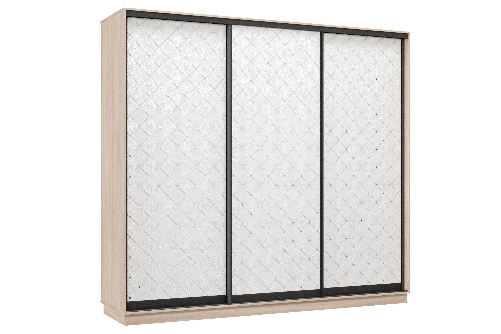 Шкаф-купе Премьер 59 (01РБ;01РБ;01РБ) фасады ромб белый/трёхдверный/Профиль чёрный муар (Ясень шимо светлый)