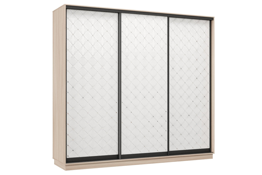 Отзывы о Столплит Шкаф-купе Премьер 59 (01РБ;01РБ;01РБ) фасады ромб белый/трёхдверный/Профиль чёрный муар Ясень шимо светлый