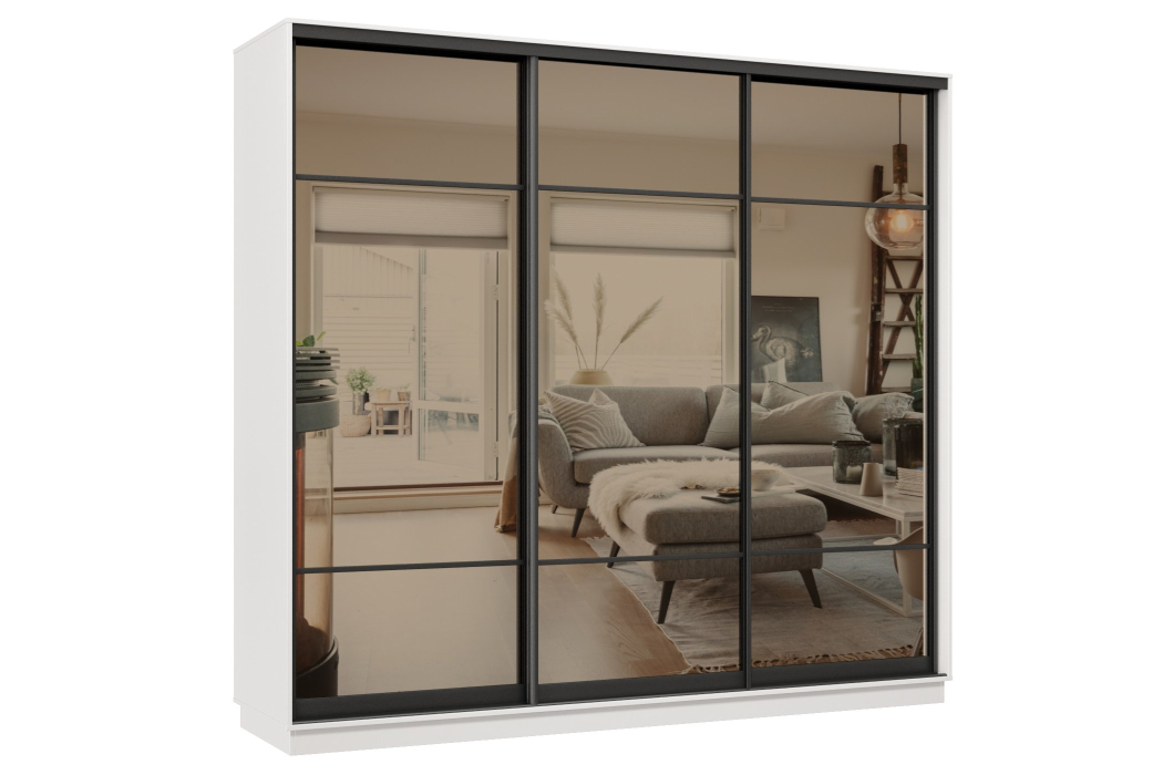 Отзывы о Столплит Шкаф-купе Премьер 59 (11ЗБ;11ЗБ;11ЗБ) фасады зеркало бронза/трёхдверный/Профиль чёрный муар Белый