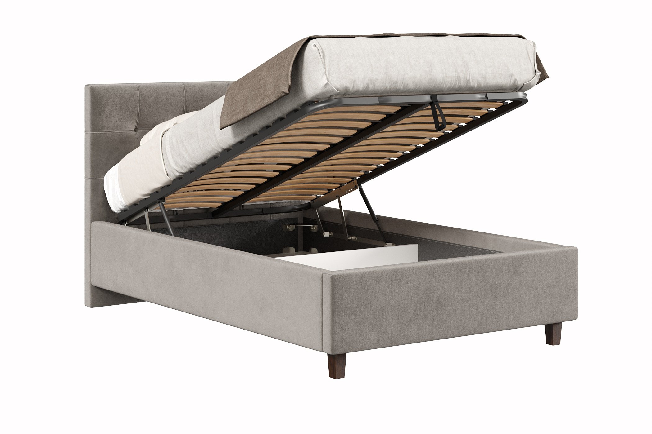 Кровать имеет нишу для хранения разных вещей, это очень удобно, если пространство в комнате не дает возможность поставить дополнительные шкафчики, либо полки.