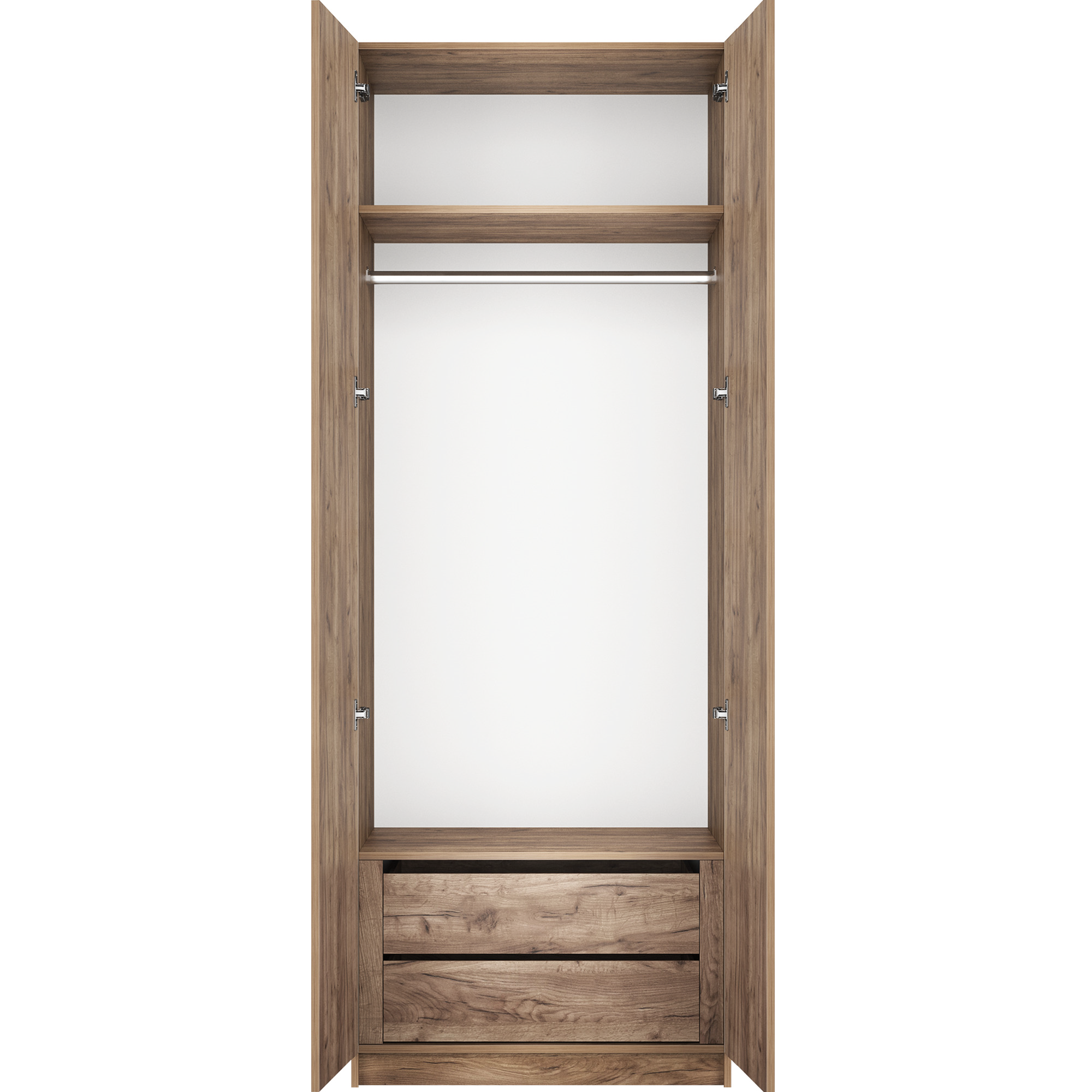 Благодаря надежным полкодержателям - штифтам, полки шкафа могут выдерживать до 15 кг. Шкаф оснащен долговечной, ударостойкой кромкой ПВХ, которая защищает его торцы от сколов и повреждений. Мебельные петли Titus B-Type обеспечивают открывание и закрывание двери под углом 110 градусов, а также предотвращают ее перекос. Наличие отдельного цоколя позволяет поставить шкаф вплотную к стене. Шкаф оснащен удобной минималистичной ручкой, изготовленной из алюминия.