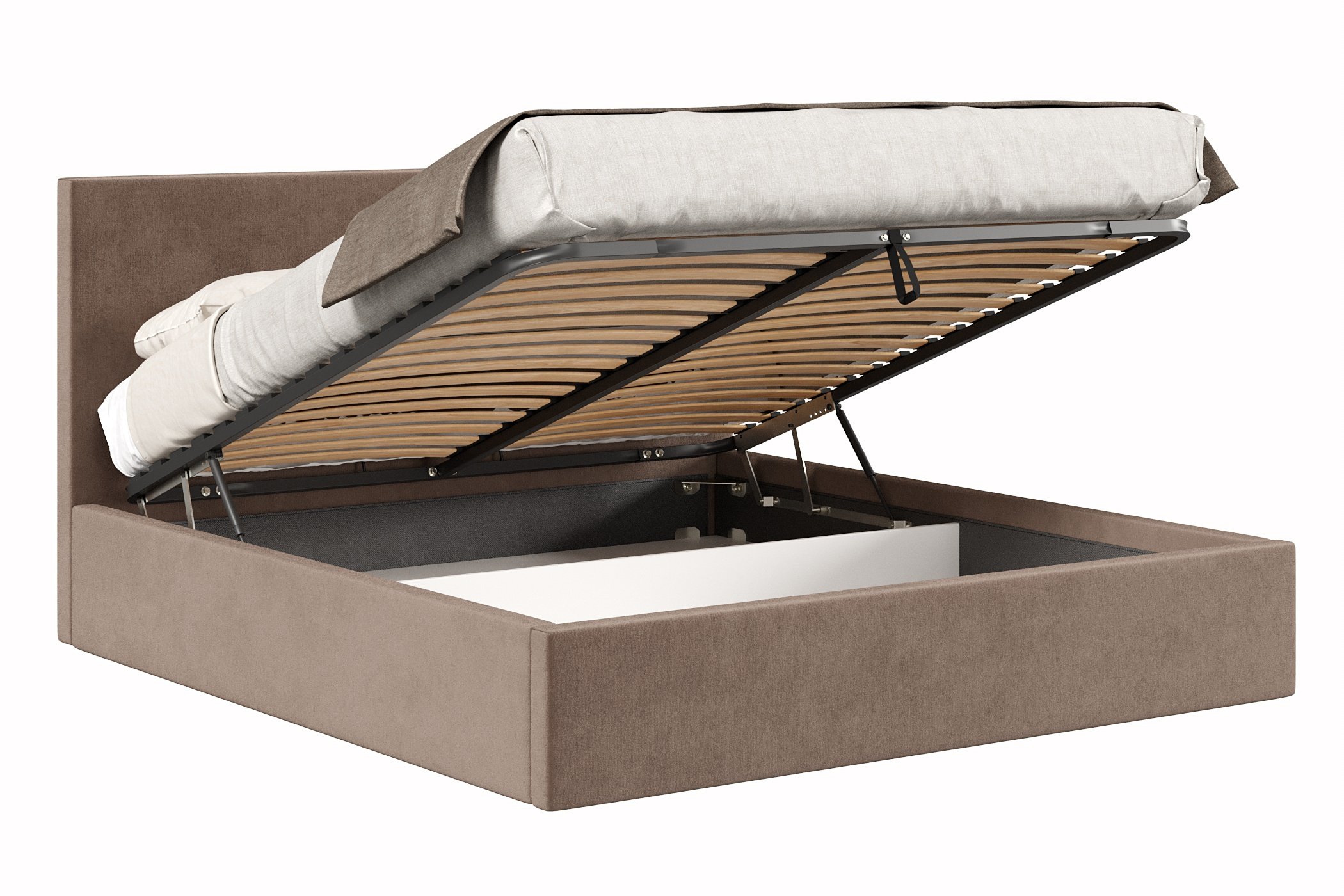 Кровать имеет нишу для хранения разных вещей, это очень удобно, если пространство в комнате не дает возможность поставить дополнительные шкафчики, либо полки.