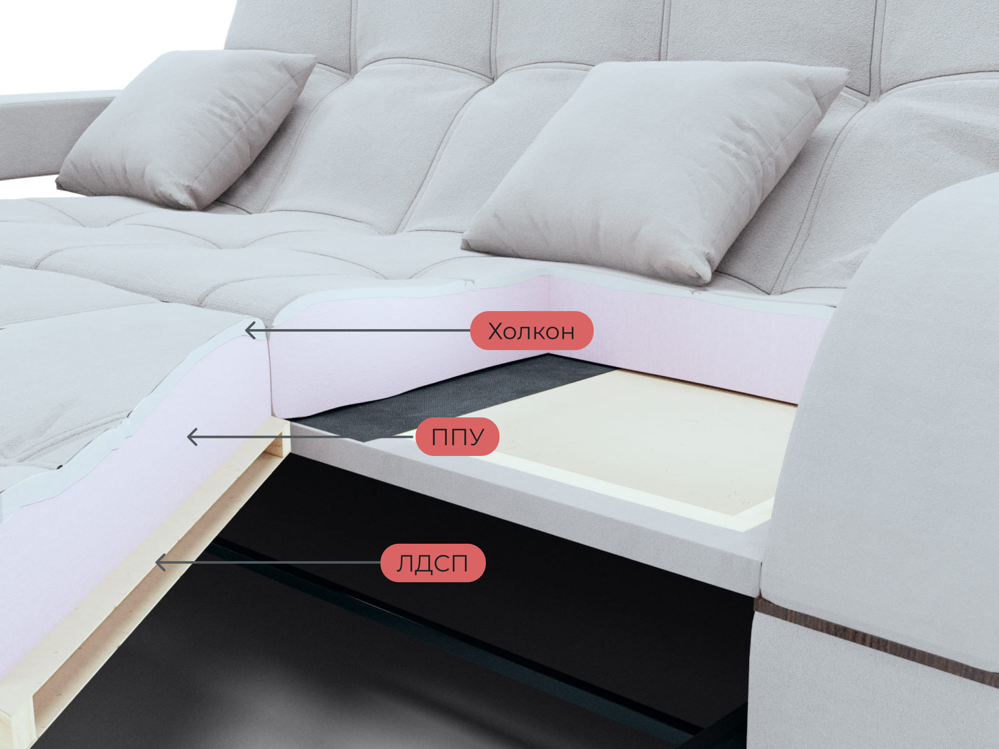 Подушки 6шт в комплекте. В чужих отзывах читала, что сзади ткань другая, но в нашем диване везде ткань одинаковая- его можно поставить посередине комнаты.