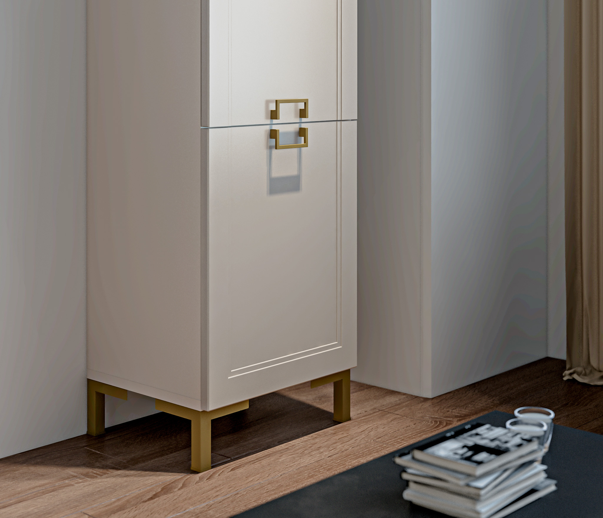 Золотистые ручки и ножки коллекции "Ассоль" добавляют неповторимый шик и изысканность, завершая образ тонким и стильным блеском. Эти акценты создают атмосферу роскоши и утонченности. Они играют роль визуального украшения, дополняя общий вид мебели и придавая ей особый шарм и элегантность.