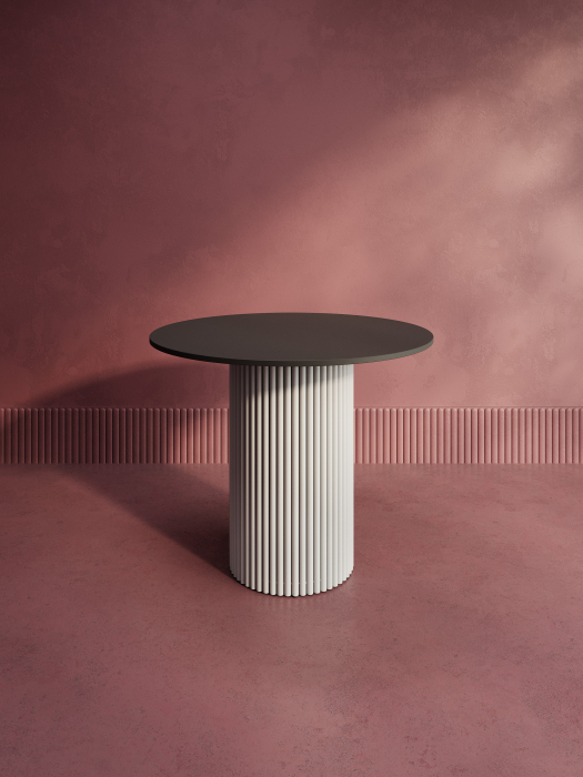 Дизайнерский круглый стол с металлическим трубчатым подстольем. Диаметр подстолья D400 мм. Столешница ЛДСП 16мм, диаметр D900 мм. Стандартный вариант - матовая порошковая окраска в чёрных или белых цветах. На заказ возможно изготовление столешницы ЛДСП в индивидуальном цвете и размере под заказ.