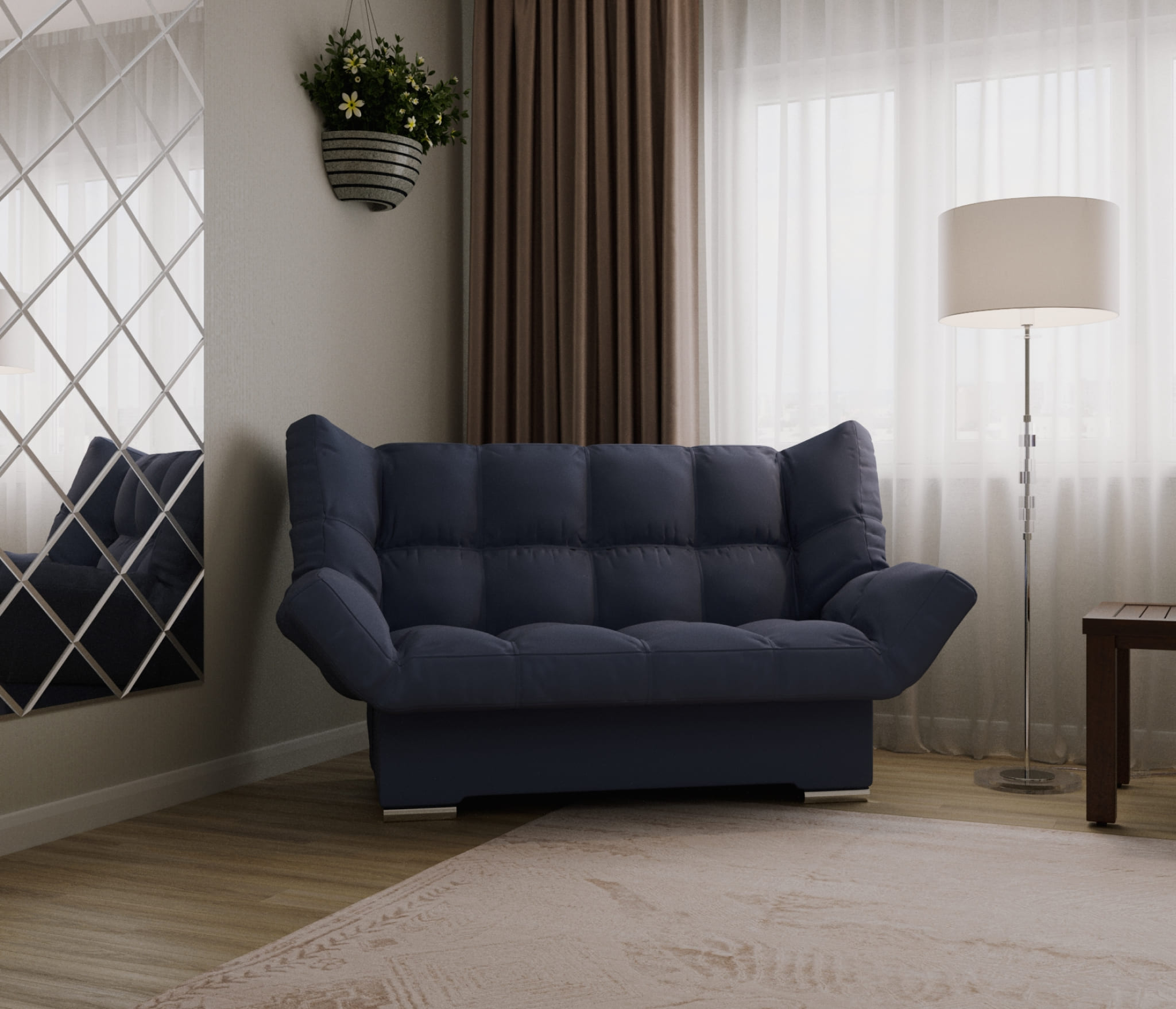 Современный и удобный диван-кровать с тремя возможными положениями вместо двух. Он отлично подойдет для современного интерьера и станет прекрасным местом для размещения гостей или друзей. В собранном виде может служить как место для отдыха или сна, а в полностью расправленном – как полноценное спальное место.