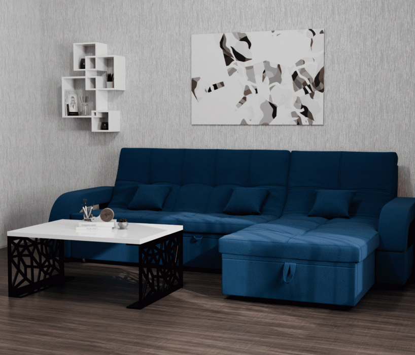 Он имеет высоту 97 см, ширину 268 см и глубину 175 см. Диван обладает универсальным расположением угла, что позволяет его использовать в любом помещении.